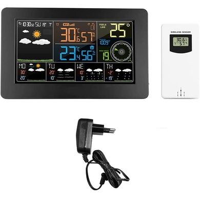 Домашна метеорологична станция с външен сензор, необходима е Wi-Fi връзка и приложение за смартфон, 4-дневна прогноза за времето, часовник, аларма, календар