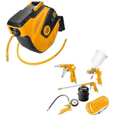 Стандартният индустриален маркуч с диаметър 3/8″ е изработен от висококачествено PVC и лесно се справя с работно наляганедо 150 psi(10 bar). Конструкцията на цялата система ездрава и оразмерена за дълъг живот дори в тежки условия. Освен това маркучът се допълва от 1,5 м (3 фута) входен елемент за лесно свързване към компресора.