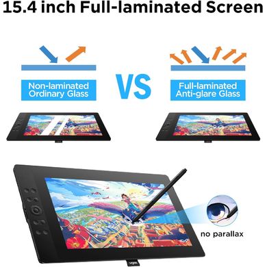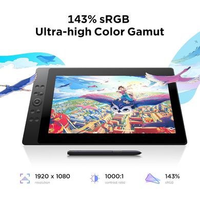 Ugee UE16 е усъвършенстван графичен таблет, проектиран да отговаря на изискванията както на професионалните художници, така и на любителите. Богатият набор от функции, прецизността и удобният дизайн го превръщат в незаменим инструмент за всеки, който се опитва да твори и работи ефективно. С точното възпроизвеждане на цветовете и практичните си функции UE16 улеснява плавния и приятен творчески процес. Този графичен таблет се отличава собширна 143% sRGB цветова гама, която предлага живо и прецизно възпроизвеждане на цветовете. Потребителите могат без усилие да превключват между sRGB, Adobe RGB и DCI-P3 цветове, което им позволява да персонализират визуалното изживяване по свой вкус. Освен това UE16 осигурява до 99% цветово покритие, което гарантира богати и реалистични цветове. Художниците могат да разчитат, че творенията им ще отразяват предвидените нюанси и фини градиенти. Таблетът разполага с напълно ламиниран 15,4-инчов дисплей, който осигурява максимална прецизност при всеки удар, като върхът на писалката и курсорът са перфектно подравнени.
